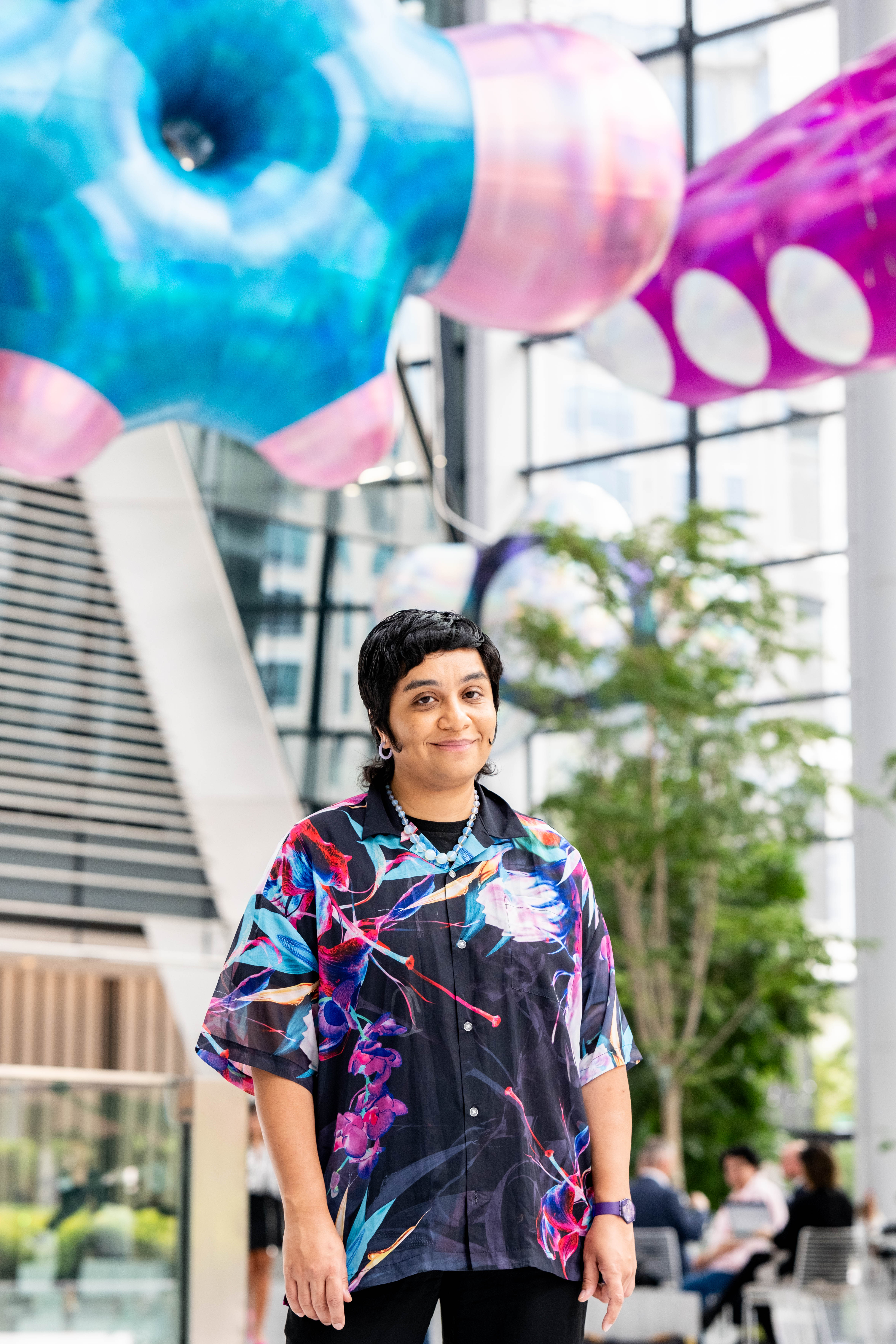 FLOATING WORLD invites viewers on a journey of contemplation on the invisibility of fossil fuel resources. - by turning them into unavoidable objects through two works on display, BENZENE FLOAT, and NAWA. Kuwaiti visual artist Monira Al Qadiri explores the fragility and perishability of these resources, allowing us to imagine that one day it must be left behind while highlighting the need for more sustainable forms of energy.